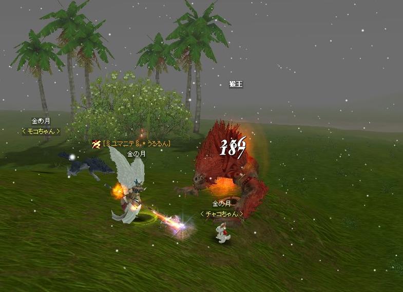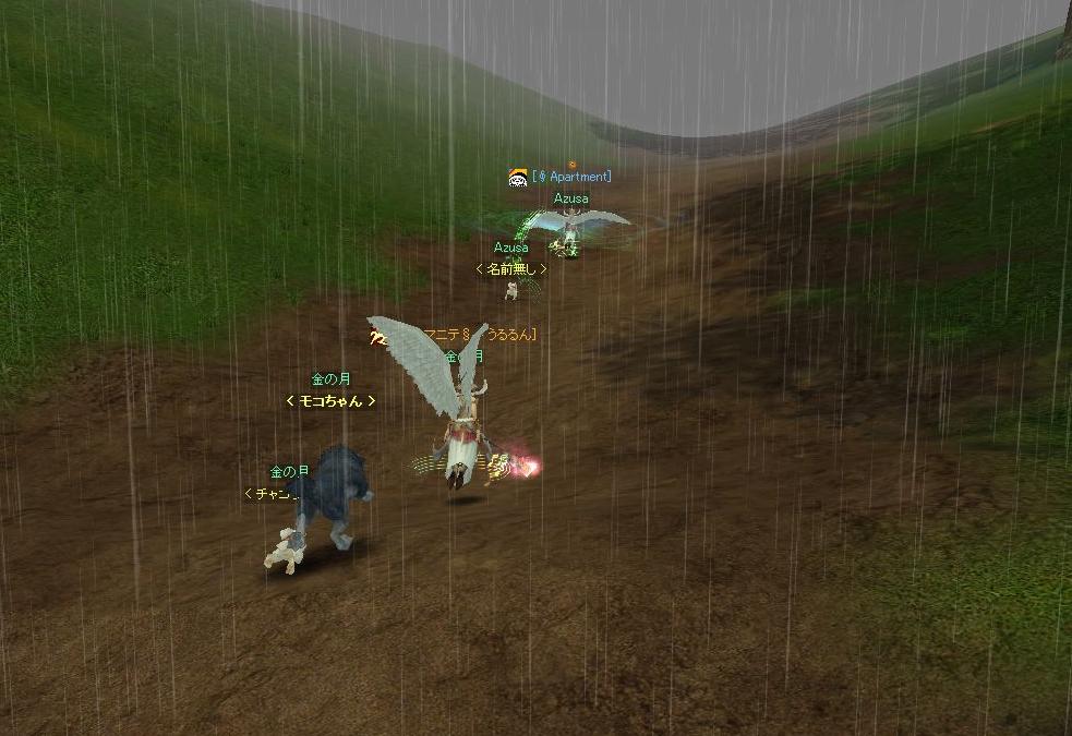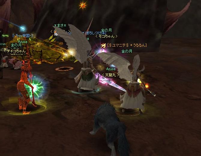 Azusaさんと猿魔法さんのバドと私の内功などで、ソロで狩りをしている方々のMP、HP回復など支援をしながら、楽しくお散歩してました^^